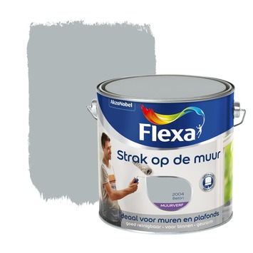 Flexa Strak op de muur muurverf in de kleur licht grijs en een matte finish. Flexa muurverf Strak op de Muur is geschikt voor alle muren en plafonds binnenshuis, ook voor de badkamer en keuken. De inhoudsmaat is liter. Het is geschikt voor muren en plafonds binnenshuis, ook voor ruimten die vochtig kunnen worden, zoals badkamers en keukens.