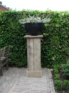 De vorm en afmeting van een kan hierbij erg verschillen. Veel gemaakte combinaties zijn een gietijzeren tuinvaas op sokkel en stenen tuinpot op zuil. Hele leuke gietijzeren pot en sokkel hoog bij doorsnee 28.